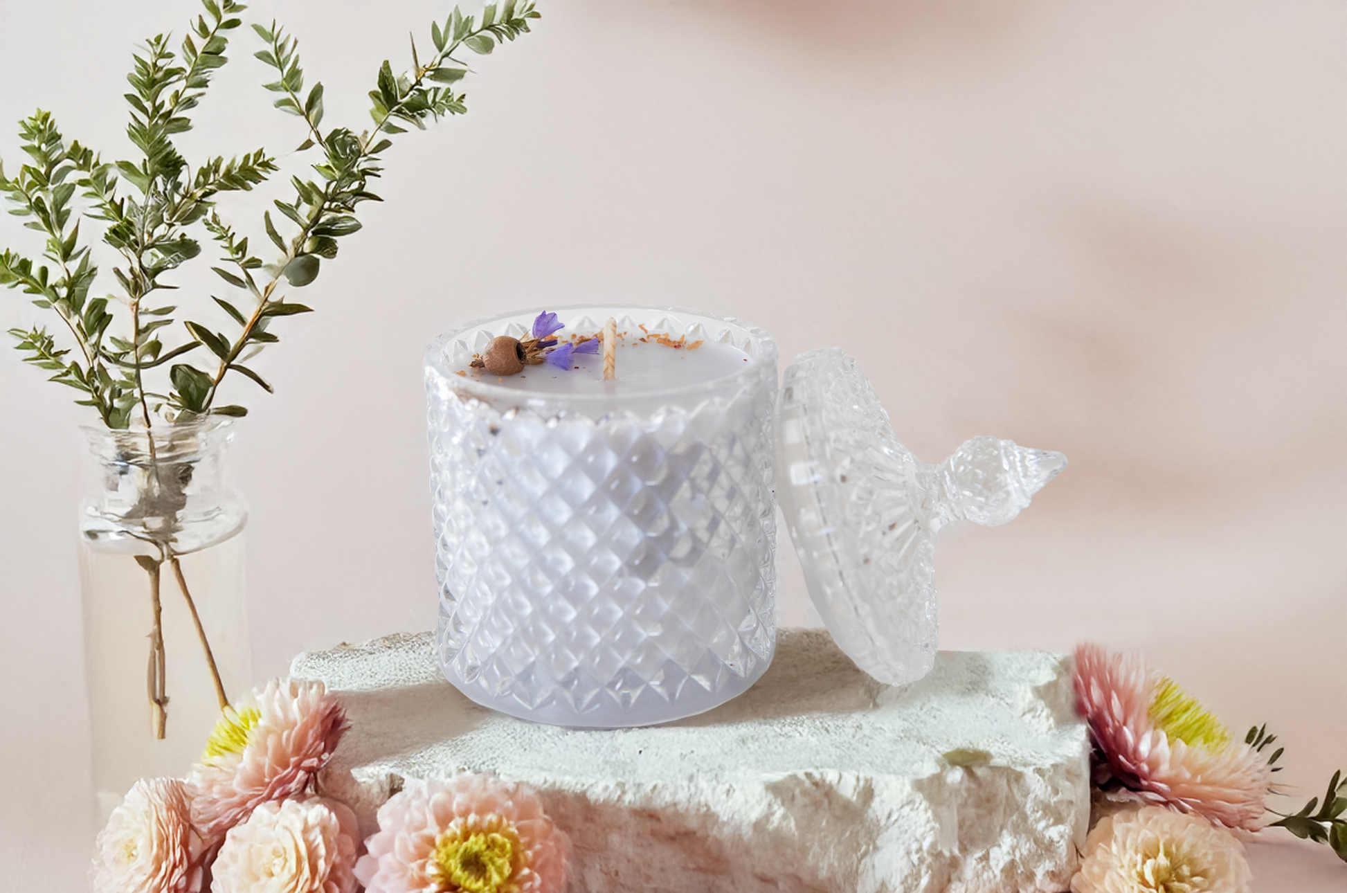 Each candle is uniquely decorated with hand-picked wildflowers, making every piece one-of-a-kind. Due to our hand-pouring process, slight colour variations in the wax may occur, resulting in lighter or darker shades. The flower decorations are also handcrafted and seasonal, so they may differ from whatโs displayed. This ensures that each candle is truly special, adding a personal touch to your home.