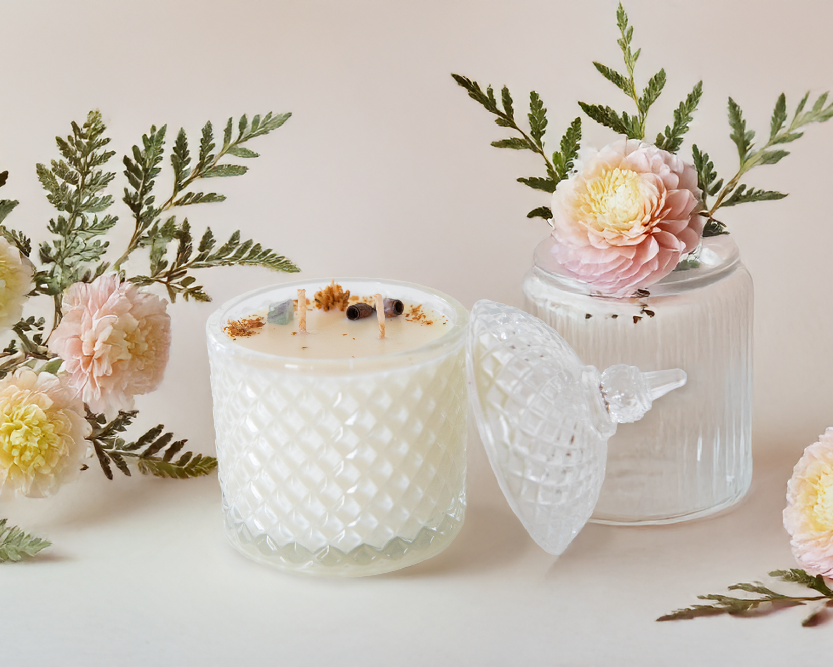 Each candle is uniquely decorated with hand-picked wildflowers, making every piece one-of-a-kind. Due to our hand-pouring process, slight colour variations in the wax may occur, resulting in lighter or darker shades. The flower decorations are also handcrafted and seasonal, so they may differ from whatโs displayed. This ensures that each candle is truly special, adding a personal touch to your home.